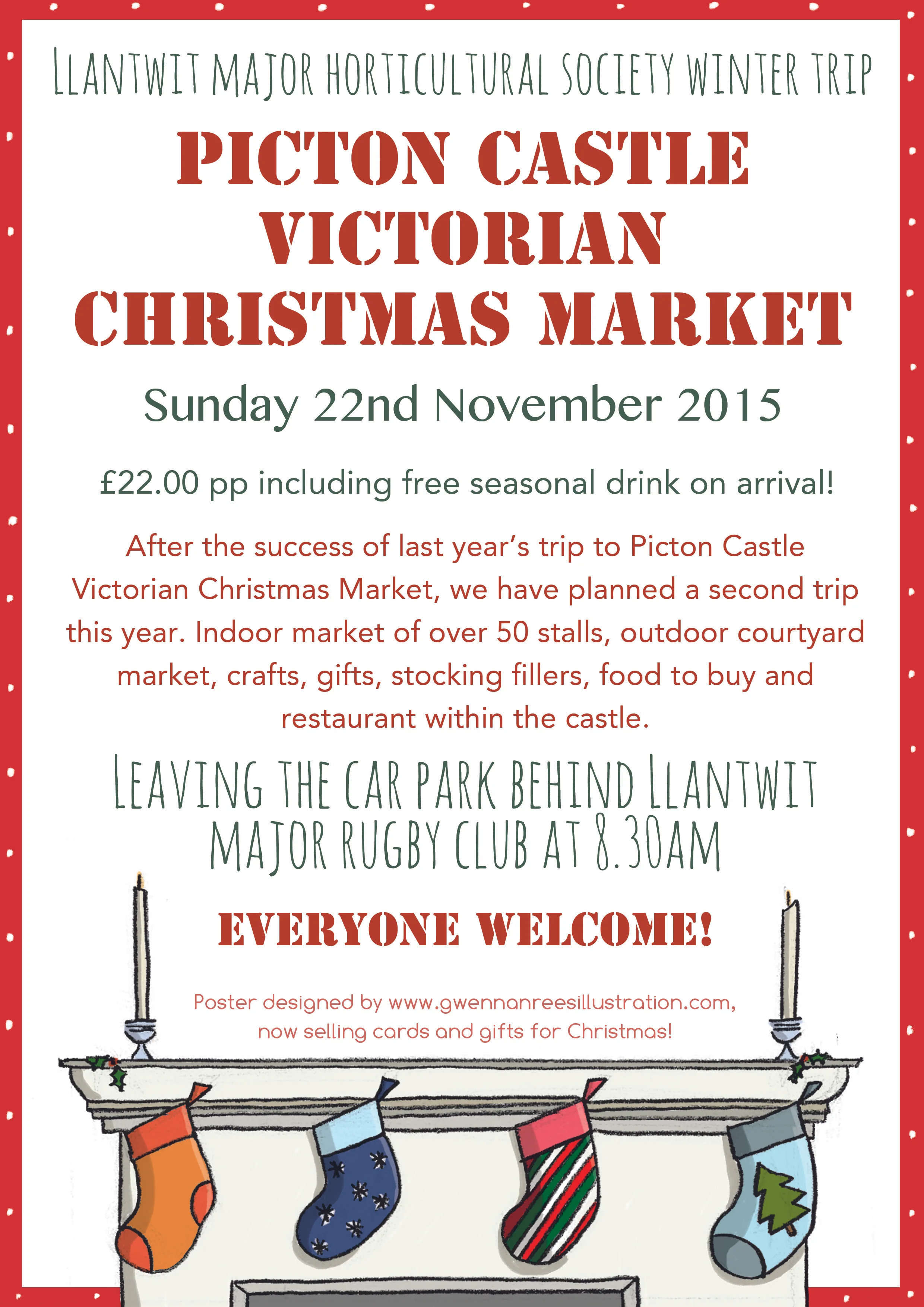 On Sunday 22nd we are taking a coach trip to Picton Castle for the second year running for their Christmas market. Places still available on this trip, please contact Elizabeth Rees if you'd like to know more!