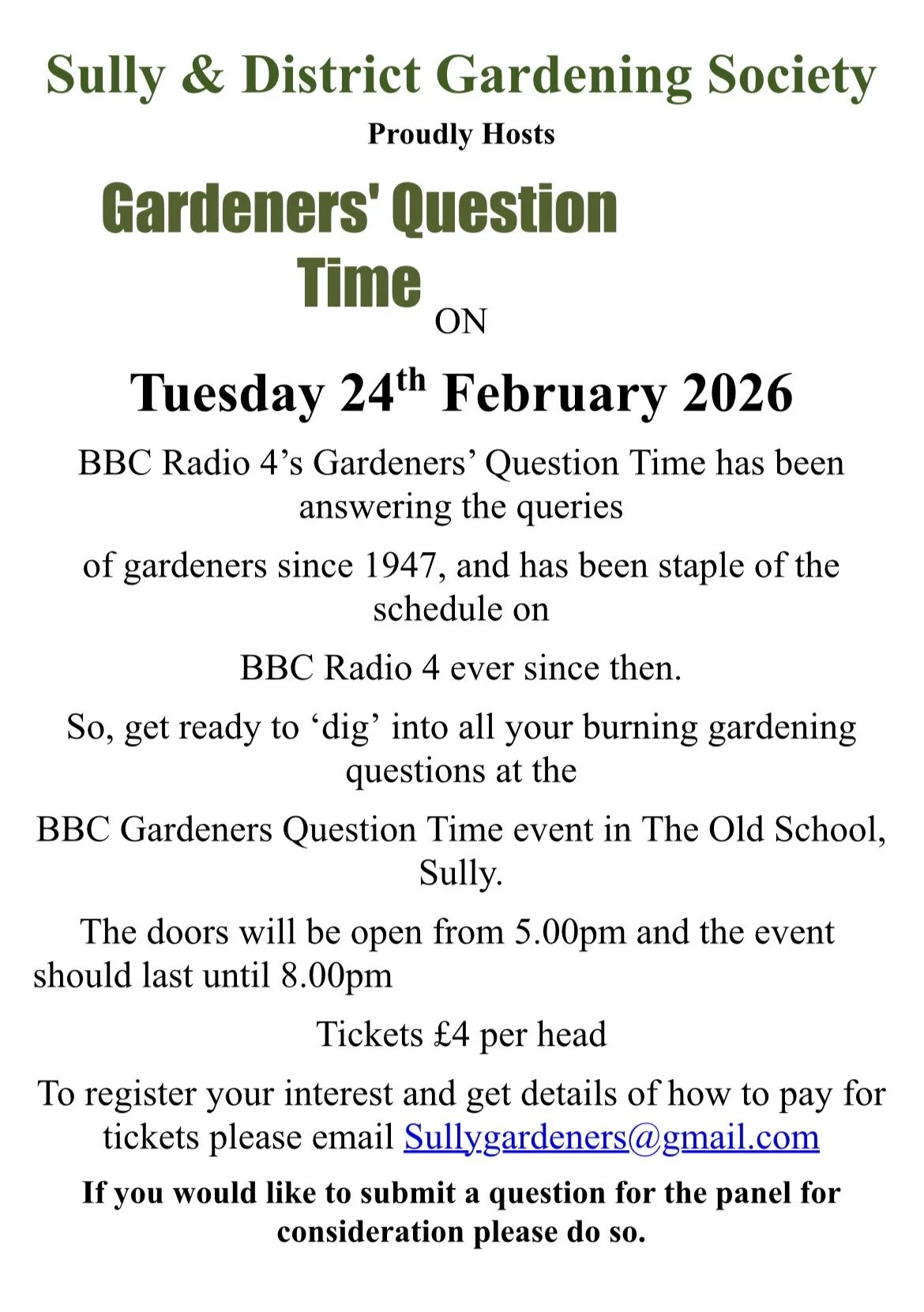 Sully & District Gardening Society talk Gwennan ReesFebruary 2, 2026 Facebook0 Twitter LinkedIn0 Reddit Tumblr Pinterest0 0 Likes