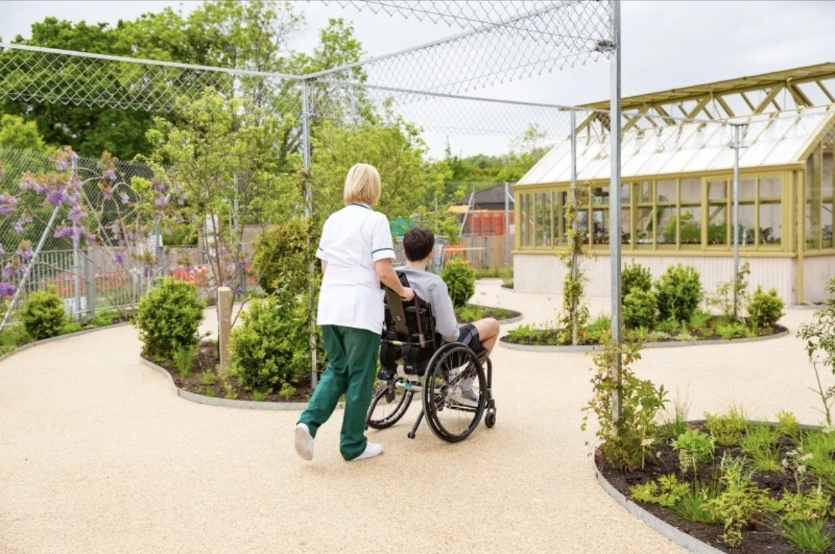 Sarah Price’s design was inspired by the Welsh landscape. The planting is naturalistic and gentle featuring valerian, poppies, field maple, and crab apples. The garden is adorned with climbers such as clematis, grapes, and roses. Circular openings within the perimeter fence frame the countryside and sea in the distance. It provides beneficiaries with a beautiful place to spend time in year-round.